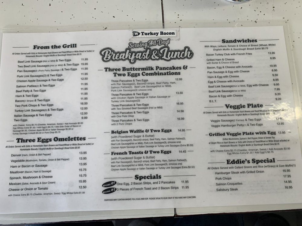 Eddie's Cafe Menu (2025 Update)